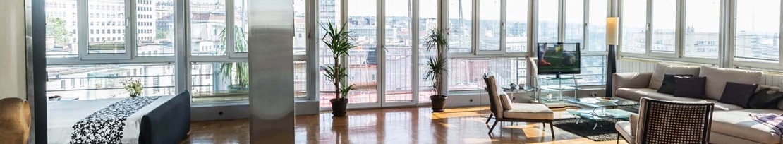 Penthouse na sedmom spratu sa panoramom Beograda na vodi, Savskim mostovima i širokom ravnicom, nezaboravne su slike svih koji borave u apartmanu A4.