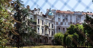Park ispred zgrade, ulaz bočnim trotoarima, hodnik bez dnevnog svetla