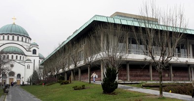 Preko puta Hrama pruža se drugo veliko arhitektonsko zdanje – zgrada Narodne biblioteke Srbije, najveća te vrste u zemlji. To je takođe najstarija institucija u Srbiji, koja je prvi put otvorila svoja vrata daleke 1832. Uništena u nemačkom bombardovanju 6. aprila 1941. godine, nepovratno je izgubila oko četiri miliona jedinica bibliotečkog materijala, no nova zgrada revnosno prikuplja i čuva postojeći fond, te predstavlja jednu od najznačajnijih nacionalnih institucija.